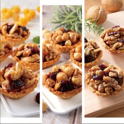 ■夏威夷豆綜合堅果塔:夏威夷豆、核桃、腰果、蔓越莓、麵粉、糖、雞蛋、奶油、鹽